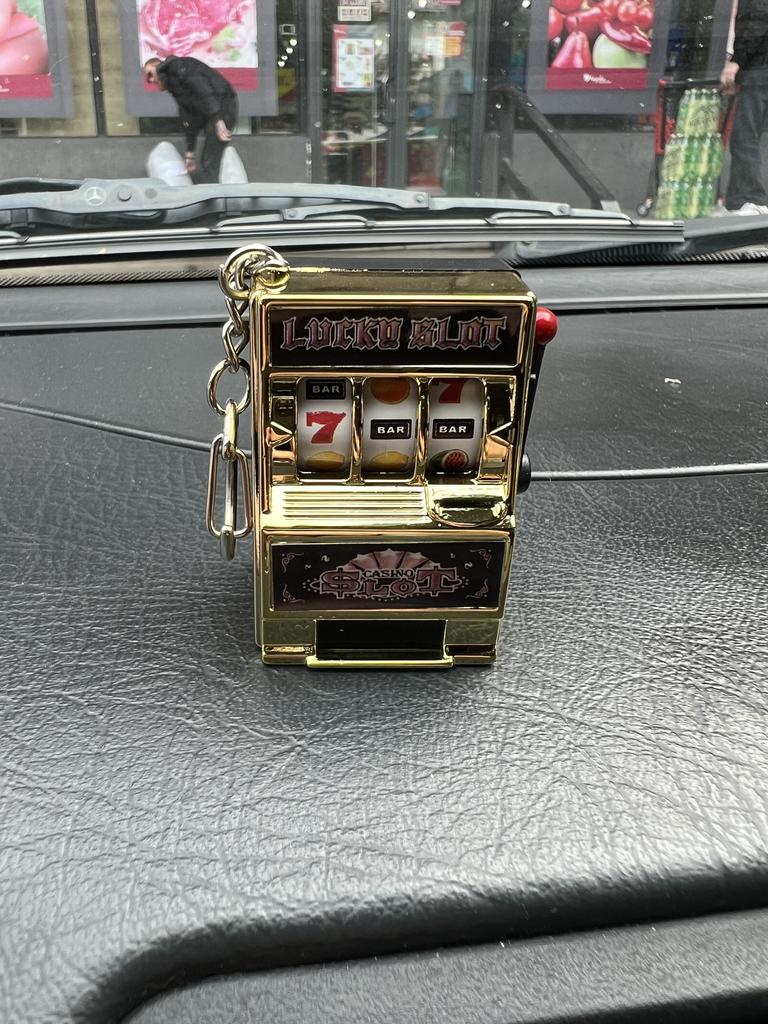 მინი სათამაშო აპარატის გასაღების ჯაჭვი პატარა ზარით სასაცილო კაზინოს გულსაკიდი იღბლიანი შარმი ჯეკპოტის გასაღების ჩანთა შარმი წვეულების საჩუქრები