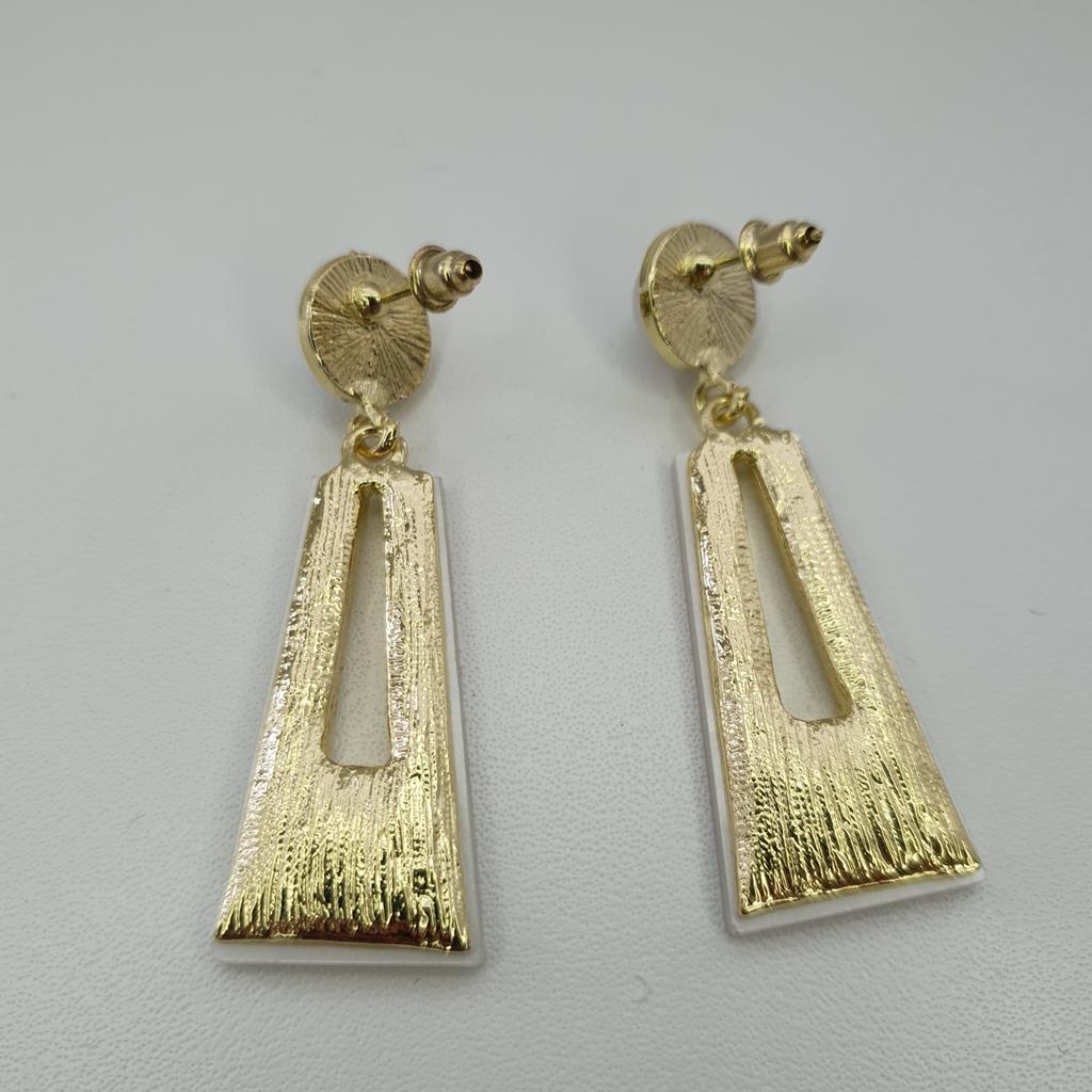 ვერცხლის ნემსისებრი ევროპული და ამერიკული გაზვიადებული აკრილის გეომეტრიული საყურეები ტრაპეციული დიზაინის საყურეები ტემპერამენტის ტკბილი და მაგარი სტილის ქალის საყურეები