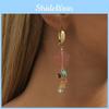Crafted from high-quality copper, these geometric-shaped earrings boast a durable and lustrous gold-plated finish. The natural stone pendants are uniquely irregular, giving each pair a one-of-a-kind look thats as unique as you are. The earrings are adorned with trendy tassels and delicate chain details that catch the light with every movement, adding a playful and dynamic element to your ensemble.