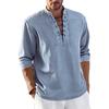 Men's Solid Color Vintage Laced Stand-Collar Loose Casual Shirt