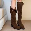 Retro Fold Two Wear Tall Pile Boots Belt Buckle Thick Heel Western Knight Boots Women's High Heel But Knee Boots