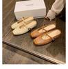 Height increase of 5cm~ holiday style straw woven square head sandals lazy half drag female summer