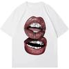 Retro Simple Sexy lips Print Summer Cotton T-Shirt Fashion Men Clothing Fashion Tops Tees Men Casual Solid Color Streetwear Tops