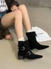 Low-heeled retro suede western cowboy boots Martin boots women's shoes 2024 new spring and autumn single boots Korean small short boots