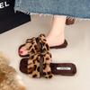 Retro temperament casual cotton drag square head girls fluffy slippers autumn and winter fashion comfortable one-word cotton slippers