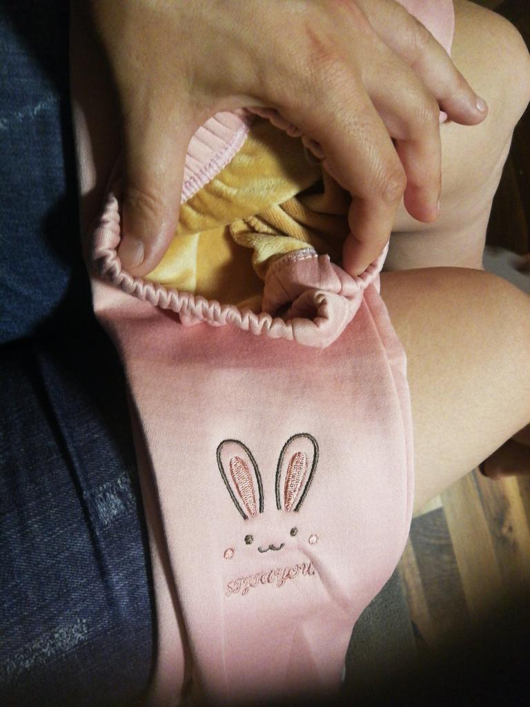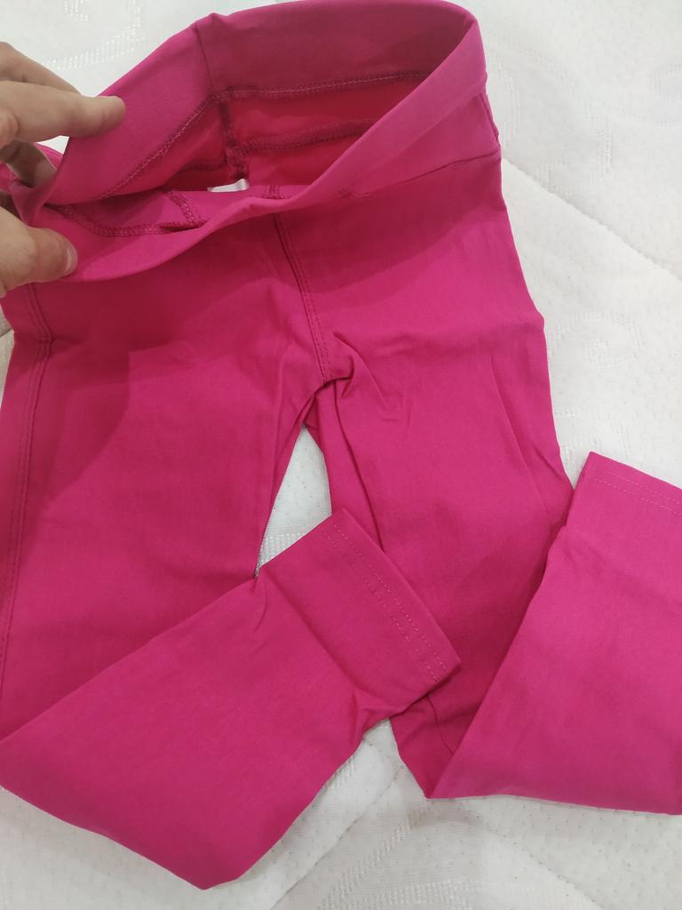 De rosa buksene til den 3 år gamle jenta har nøyaktig størrelse, men jeg kjøpte de mørke med reserve.