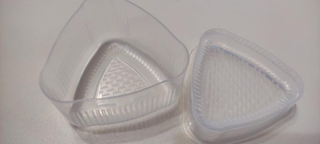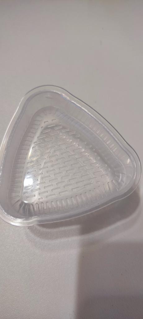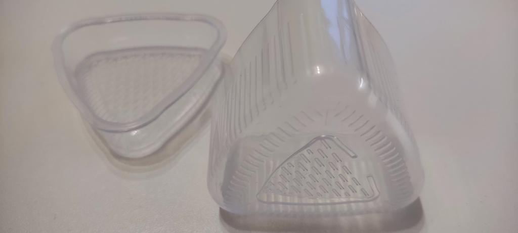 Plastform for å lage sushi. Den kom i en revet pakke, men intakt. Uten fremmed lukt, med lokk. Anigiri er ganske enkelt formet takket være formen, de er enkle å fjerne, selv et barn kan håndtere dem.