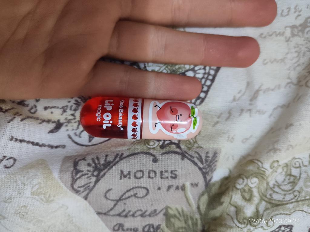 Liten, med en ferskenaktig lukt og leppene blir blekrosa umiddelbart etter påføring