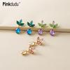 Pinkdudu Mote Flash 3 farger Rhinestone firkantede dråpeøreringer Personlighet Gradient Farge Geometrisk øredobber for kvinner PD1555