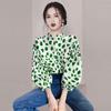 Dame Ny Polkadottert Langermet Revers Enkeltspent Skjorte Topp
