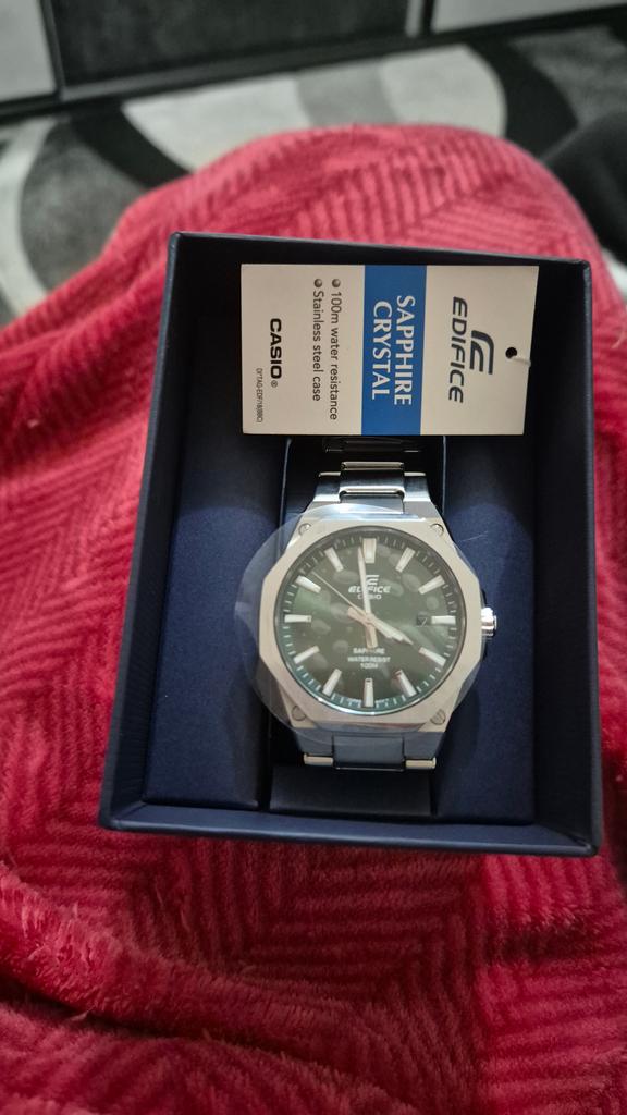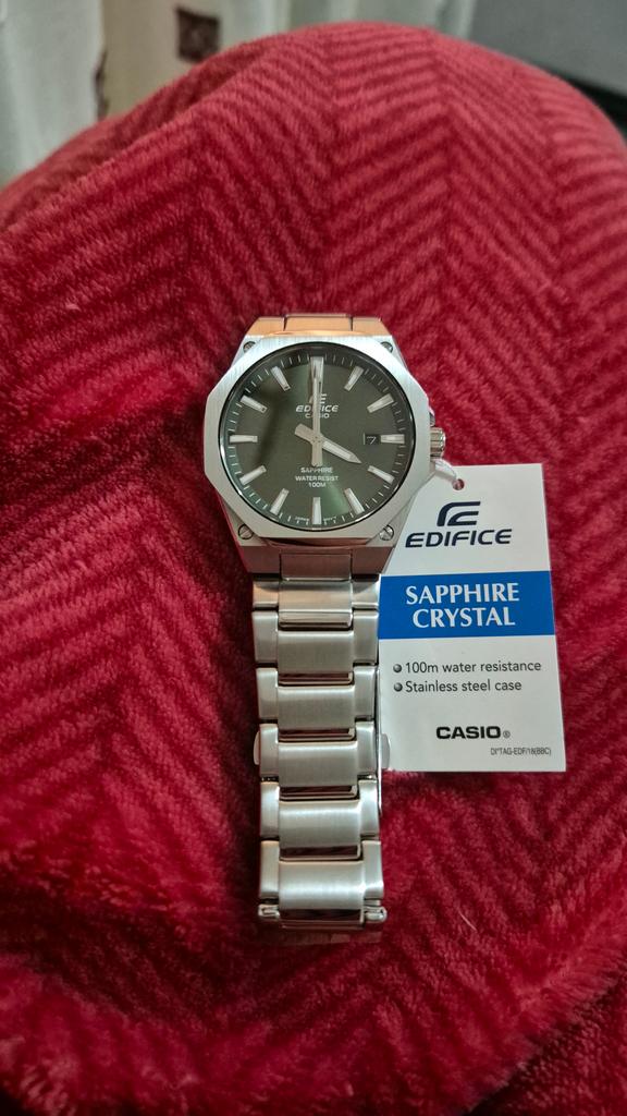 Casio Edifice Safir Krystall Analog Rustfritt Stål Grønn Urskive Kvarts EFR-S108D-3A 100M herreklokke