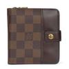 Product : LOUIS VUITTON Damier Brown Leather Bifold Wallet Compact Zip #9750