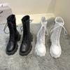 Martin Boots Women's Spring and Autumn Thin Section Thick-soled Increased Lace-up Short Boots All-match Thick-heeled Mid-tube Boots