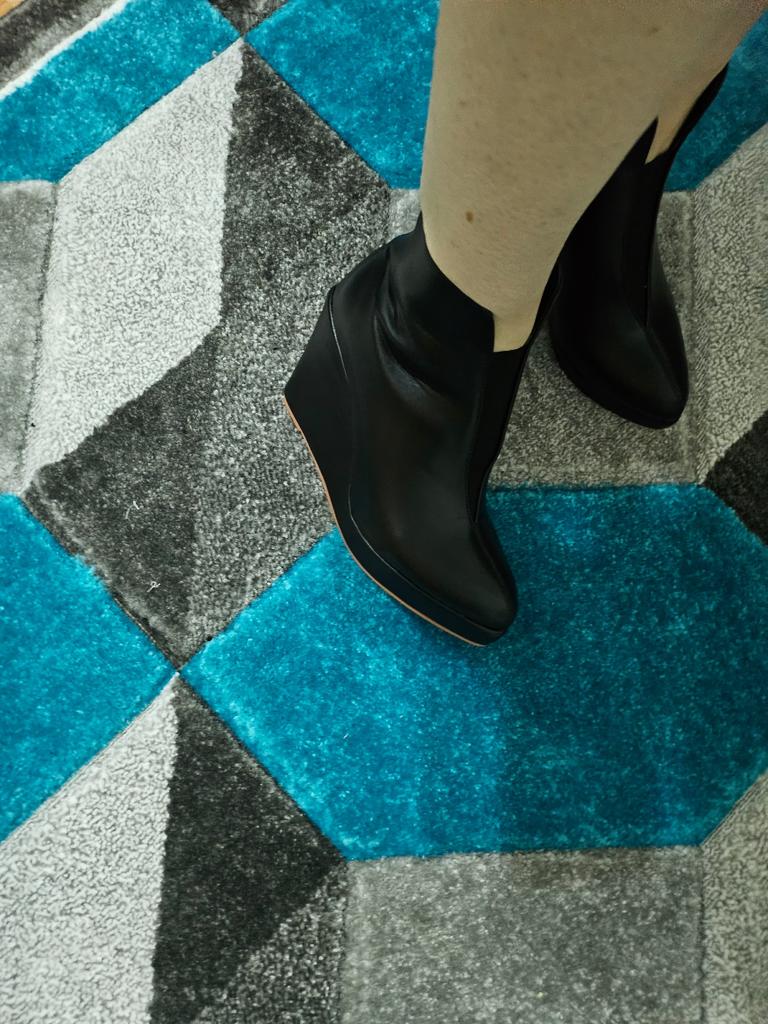 2024 Høst Tidlig Vinter Sko Dame Ankelstøvletter Plattform Moderne Kilehæler for kvinner 10 cm Ren Svart Hvit Plussstørrelse 42