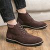 Classic Chelsea Boots Men's Suede Leather Boots Lace Up Ankle Boots Pointed Toe Low Heel Thick Sole Business Boots British Style