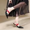 Fashion Size 35-43 Women Kitten Heels Mules Golden Rivet Pointed Toe Summer Sandals Fashion Beige Ladies Casual Med Heels Shoes