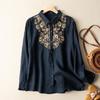 National Style Top Pure Cotton Linen Embroidered Shirt Women Ethnic Style Summer Chinese Style Oblique Placket Buttoned Shirt