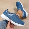 New large size casual sports shoes women's round head flat bottom knitted mesh casual single shoes