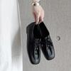 Lace-up bow square head lazy half slippers women wear flat toe shoes