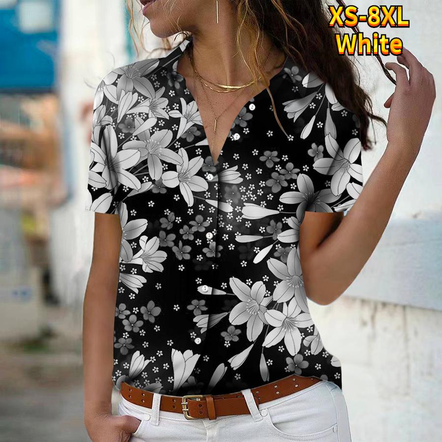 2025 Sommer Ny Mote Dame Blomsterprint Kortermet V-hals Casual Knappedown Skjorte Topp
