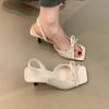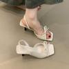 Exquisite and elegant square head bow open-toed sandals women's summer classic temperament wear high-heeled sandals
