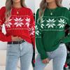 Dame Mote Rund Hals Langermet Jule Snøkrystall Genser Casual Pullover Strikket Genser Topp