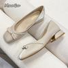 Fashion Elegant String Beaded Fashion Slip-On Women Shoes Square Toe Medium Heel Versatile Casual Velvet Summer Loafers Chaussures Femme