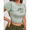 Summer Cool Versatile 2024 New Arrival Fashion Style Temperament Crew Neck Short Sleeve Print Cropped T-shirt Tops