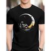Men's summer 100 cotton fashionable casual loose plus size landing moon pattern printed sports round neck short sleeved T-shirt