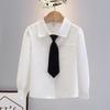 This girls' long sleeve shirt features a fashionable Korean style, perfect for adding a stylish touch to a child's wardrobe. Crafted from a soft cotton blend, it offers comfort and breathability, making it ideal for the mild weather of spring and autumn. Its classic design makes it suitable for use as a school uniform or as a versatile addition to everyday outfits.