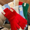 Extended rabbit fur blue knitted wool gloves for women's winter thickened warm riding