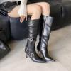 Stiletto Heel High Boots Autumn and Winter New Pointed Toe Side Zipper Metal Buckle Waterproof and Non-Slip Women's Shoes