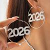 Rhinestone 2026 Stud Earrings Jewelry Crystal Party Earrings Pendant Happy New Year Earrings Girls