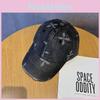 Washed Denim Retro Baseball Cap With Cross Print Design For Daily Casual Wear