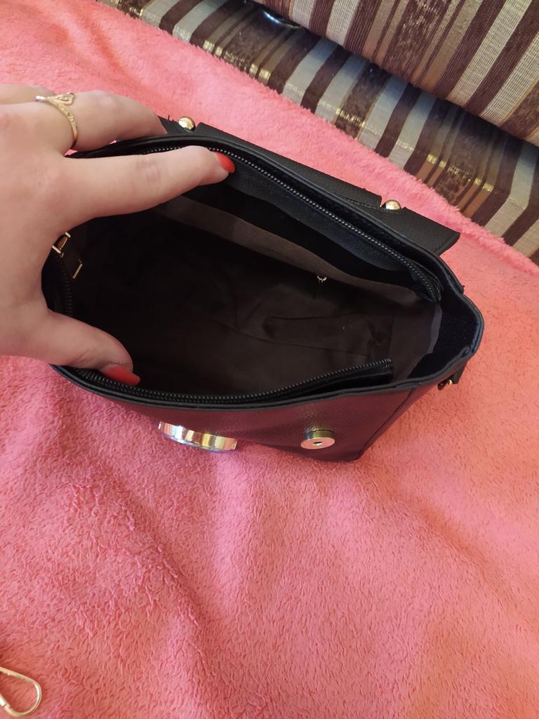 Сумочка пришла очень быстро! Отслеживалась на всем пути. От её качества я в полном восторге, строчки ровные никакого запаха. Чтобы при транспортировке сумка не деформировалась продавец положил "подушечку воздуха". Очень вместительная, разделений нет, внутри два боковых открытых кармашка и один на замочке. Так же имеется внешний кармашек на замке, что для меня является +. Закрывается на две скрытые кнопки и очень интересную застежку. Сумочка заслуживает 5 звёзд. Спасибо продавцу.