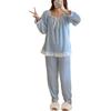 BAJAOEY Пижама Длинная Легкая Плиссированное Кружево Милая и Повседневная Одежда для Дома Женский Комплект, 100% Хлопок, Рукав, Домашняя Одежда, Пижама, Мягкая, Женская,