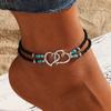 Bohemia Layered Beaded Anklet For Women Hollow Double Heart Charm Ankle Bracelet Summer Beach Vacation Foot Jewelry Gift