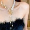 Gnistrande diamanthalsband med pärlmotiv för kvinnor, nyckelbenskedja/vintertröjakedja