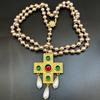 Vintage Rättsfärgade Ovala Pärlor Emalj Halsband Med Diamantaccenter Europeisk Vintage Nyckelbenskedja Elegant Halsdekoration