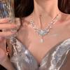 Fjärilsrosett Flerlagershalsband med Falska Pärlor och Galvaniserad Kedja för Kvinnor