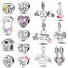 925 Silver Blomma Berlock Pärla Hänge för Smyckestillverkning Alla hjärtans dag Present Passar Originalarmband Glaserade Pärlor