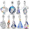 S925 Silver Disney Prinsessberlocker Sjöjungfru Elsa Belle Snövit Pärlor Passar Originalarmband DIY Hänge Dam Smycken