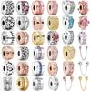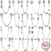 S925 Silver Hjärtformade Pärlor Clip Charms Säkerhetskedja DIY Armbandsmakeri Fint Smycke Gåvor till Kvinnor