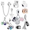 Gör-det-själv Flygplan Världsklot Resväska Hängande Berlocker Pärlor för 925 Silverarmband Dam Smycken Gåva Handgjort Hantverk
