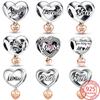 NYTT Rose Guld Familjekärlek Berlock Hängande Pärla Blomma Hjärta Klämma Passar Silverarmband DIY Smycken Gåva till Henne