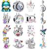 925 Silver Nalle Pudel Hund Katt Berlocker Pärlor Hänge Universell Spänne Passar Armband DIY Smycken Gåva