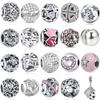 Disney 925 Silver Micky Winnie Pooh Berlocker Pärlor Dam Armband Halsband Hänge Smycken Gåva Original