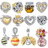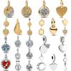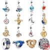 925 Silverpärlor Gyllene Cirkel Berlocker Kärlekshjärta Hänge DIY Smycken Gåva till Kvinnor Modeaccessoarer