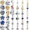 925 Silver Blå Natthimmel Berlock Hänge Glittrande Smycke Gåva till Kvinnor Passar Originalarmband Tillbehör