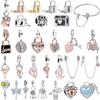 925 Silver Rosa Serie Tårvingsar BlommaHjärta GrisHusmunkHjärta BerlockPärla DIY Originalarmband För Kvinnor Flickor Smycken